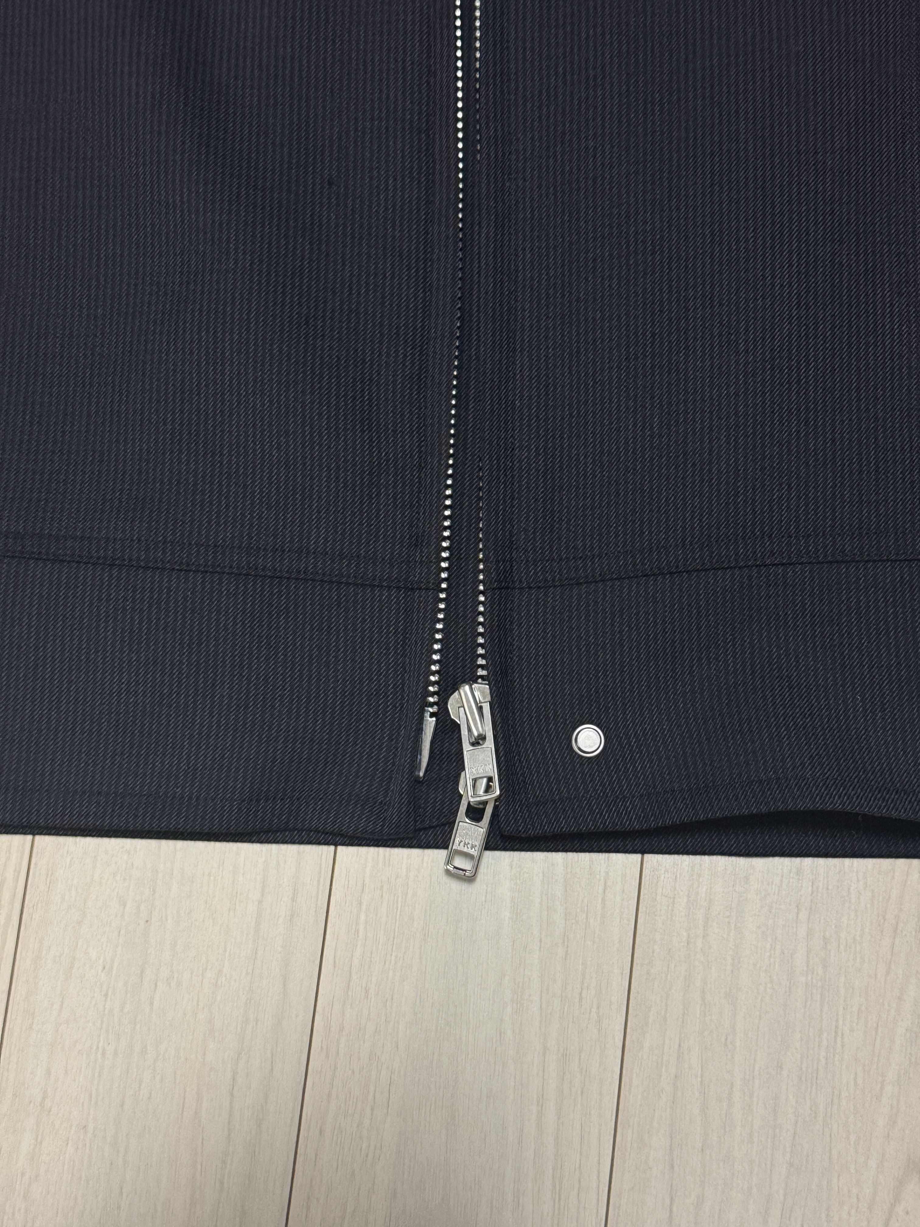 촘촘하게 들어간 핀스트라이프 패턴이 매력적이며 단순한 네이비 컬러를 넘어섰다는 느낌이 들어요.